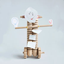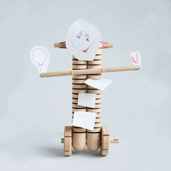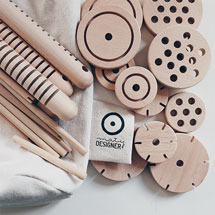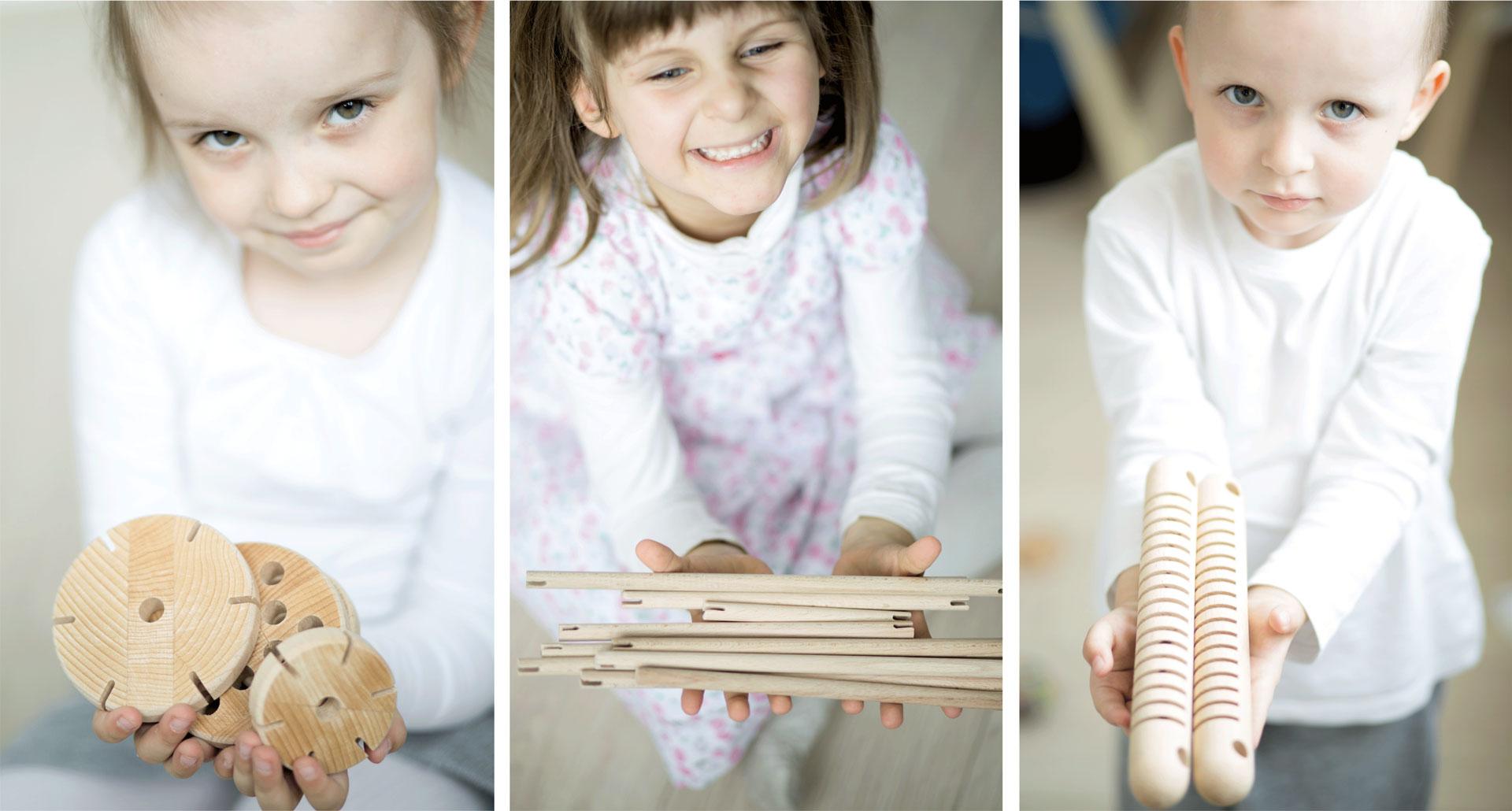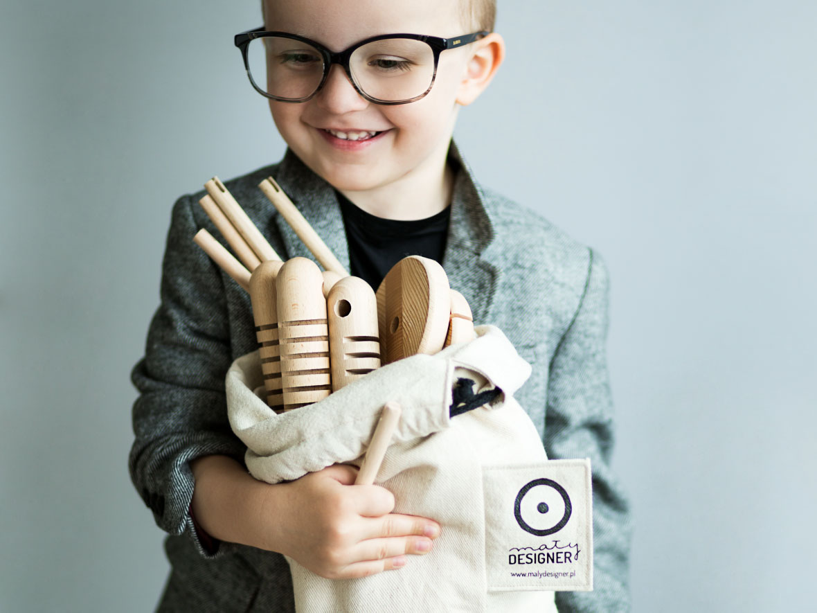 Mały designer to nie tylko zestaw drewnianych klocków. Mały designer to system pracy, który ma wspomagać naturalną kreatywność dziecka. To połączenie zestawu drewnianych klocków z kartką papieru, łączącymi elementami i zadaniem projektowym. Elementy łączące nie zostały narzucone, gdyż to dziecko ma postanowić czy chce łączyć elementy chwilowo opierając się tylko na prawie ciążenia, czy będzie używało pomocy łączących takich jak gumki recepturki czy sznurki, dla trwalszego efektu.